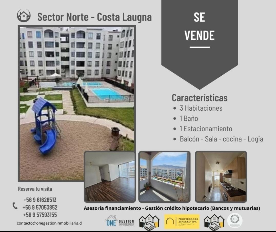Se vende hermoso departamento en 5° piso, con excelente ubicación en el sector norte de Antofagasta, dentro del reconocido condominio Costa Laguna.